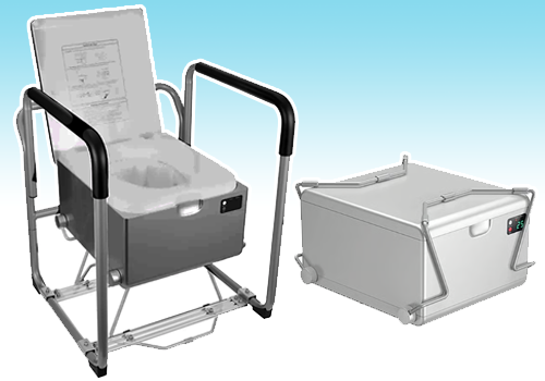 Lightweight, Waterless Dry Flush Toilet with Carry Handle for Home Care and Off-Grid Use.
